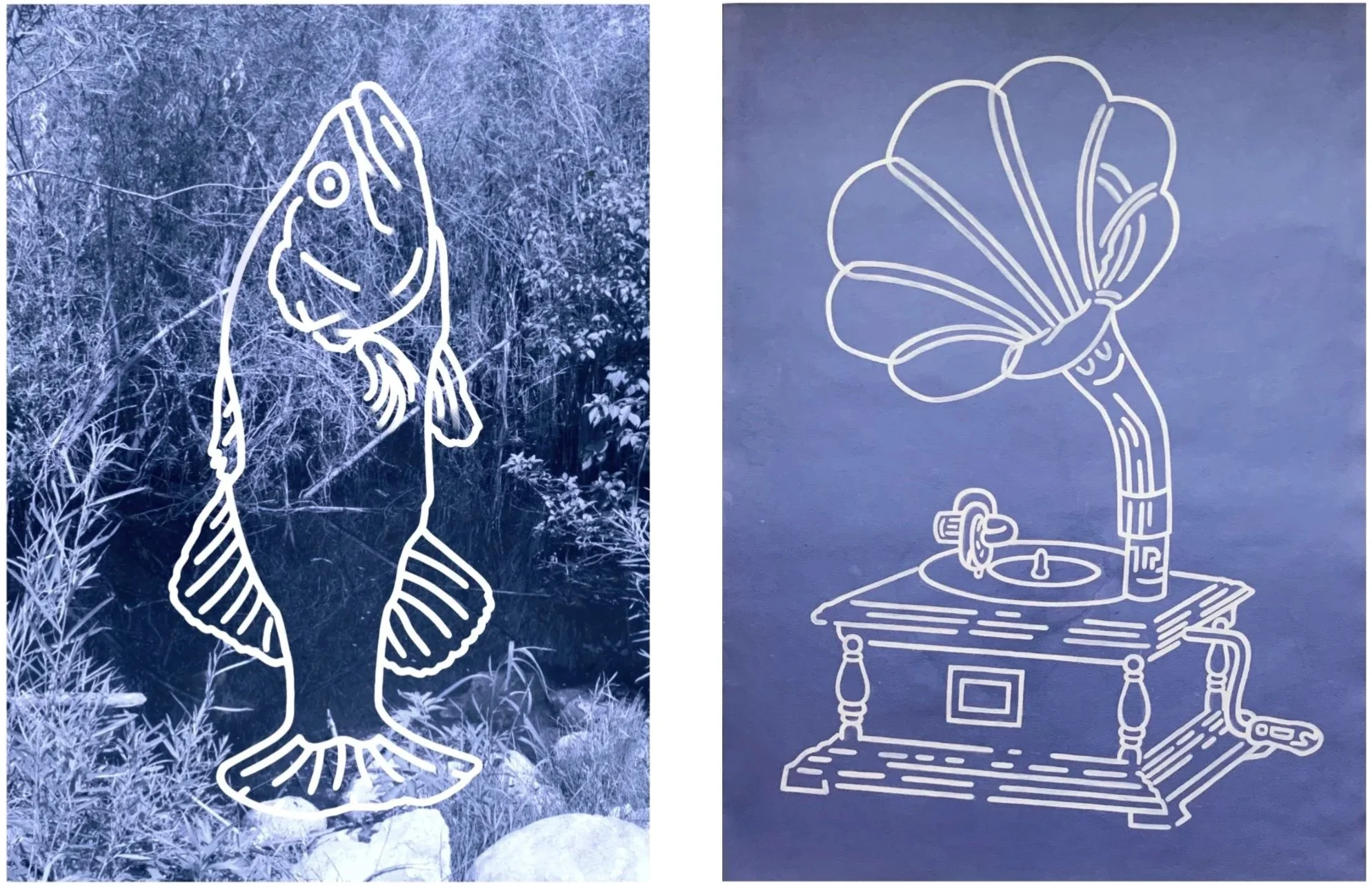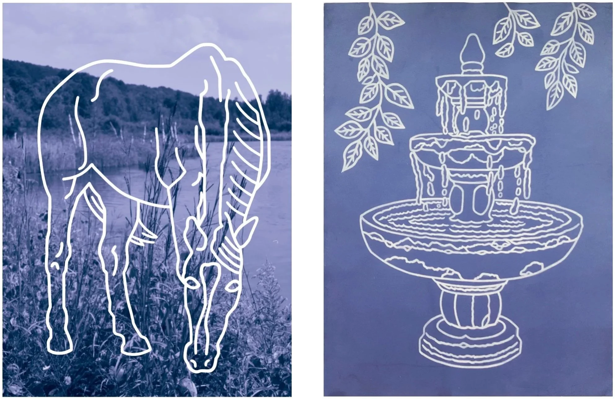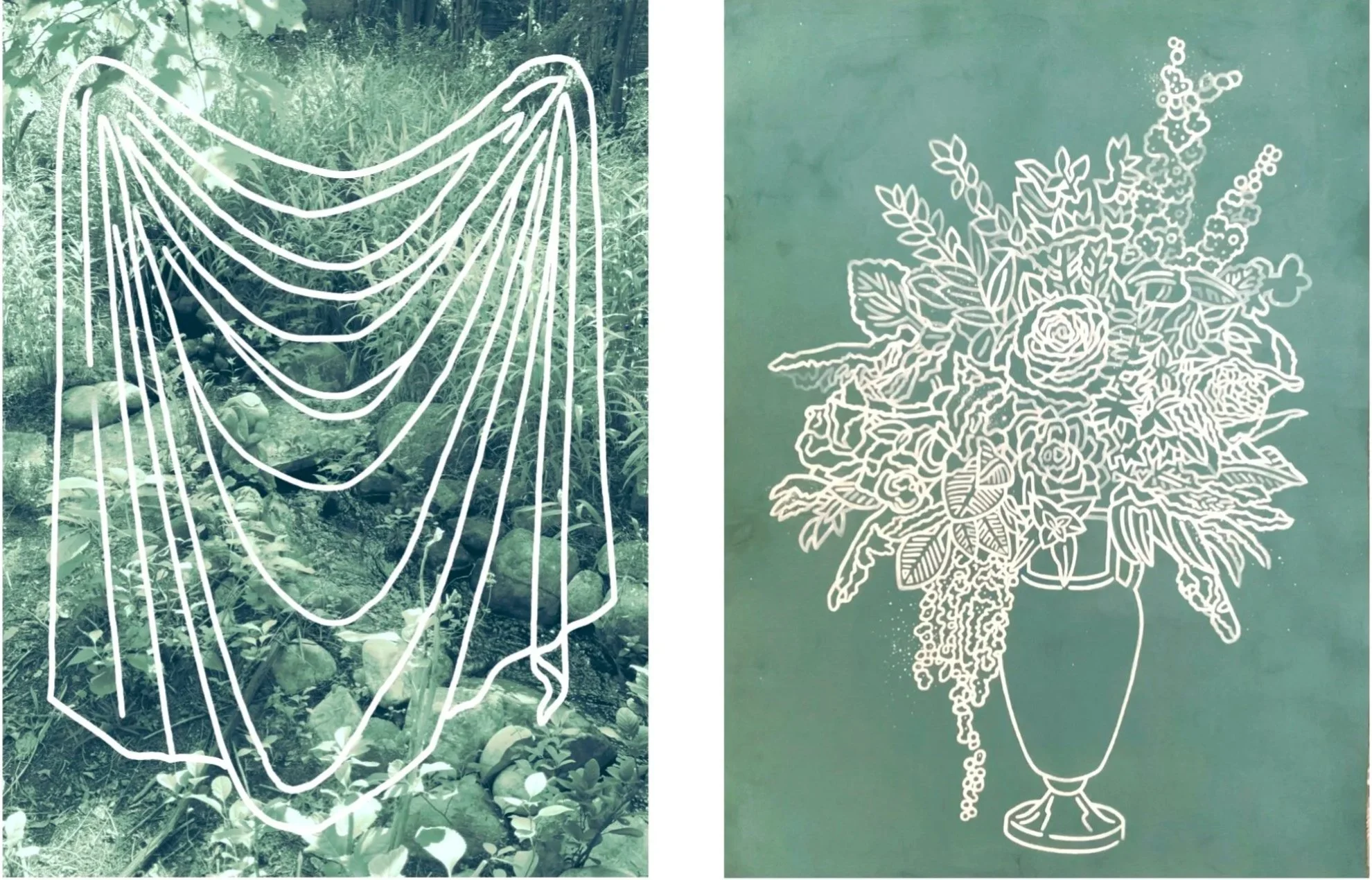 gouache on hand-dyed paper with digital print, 22.5” x 30”