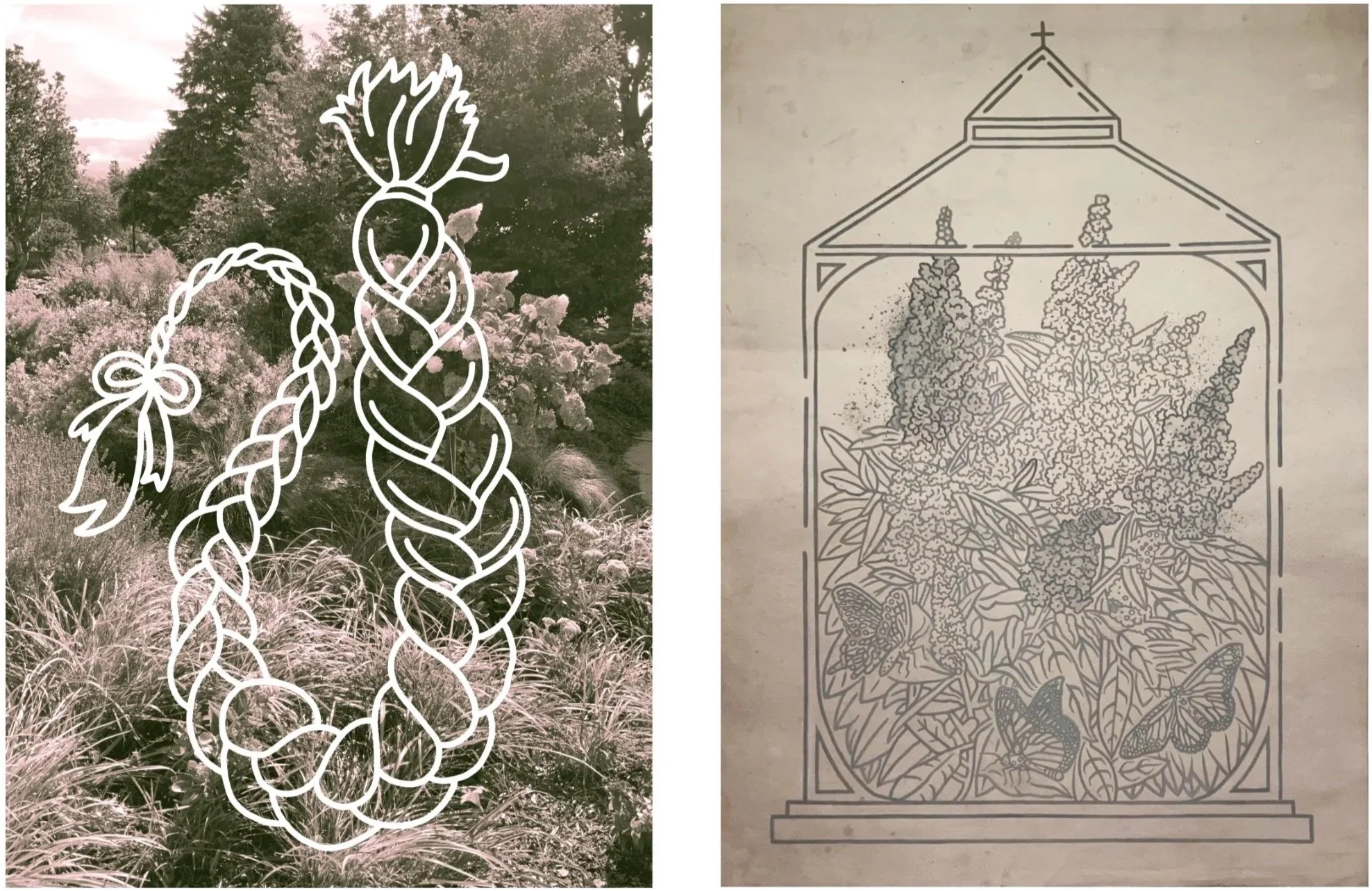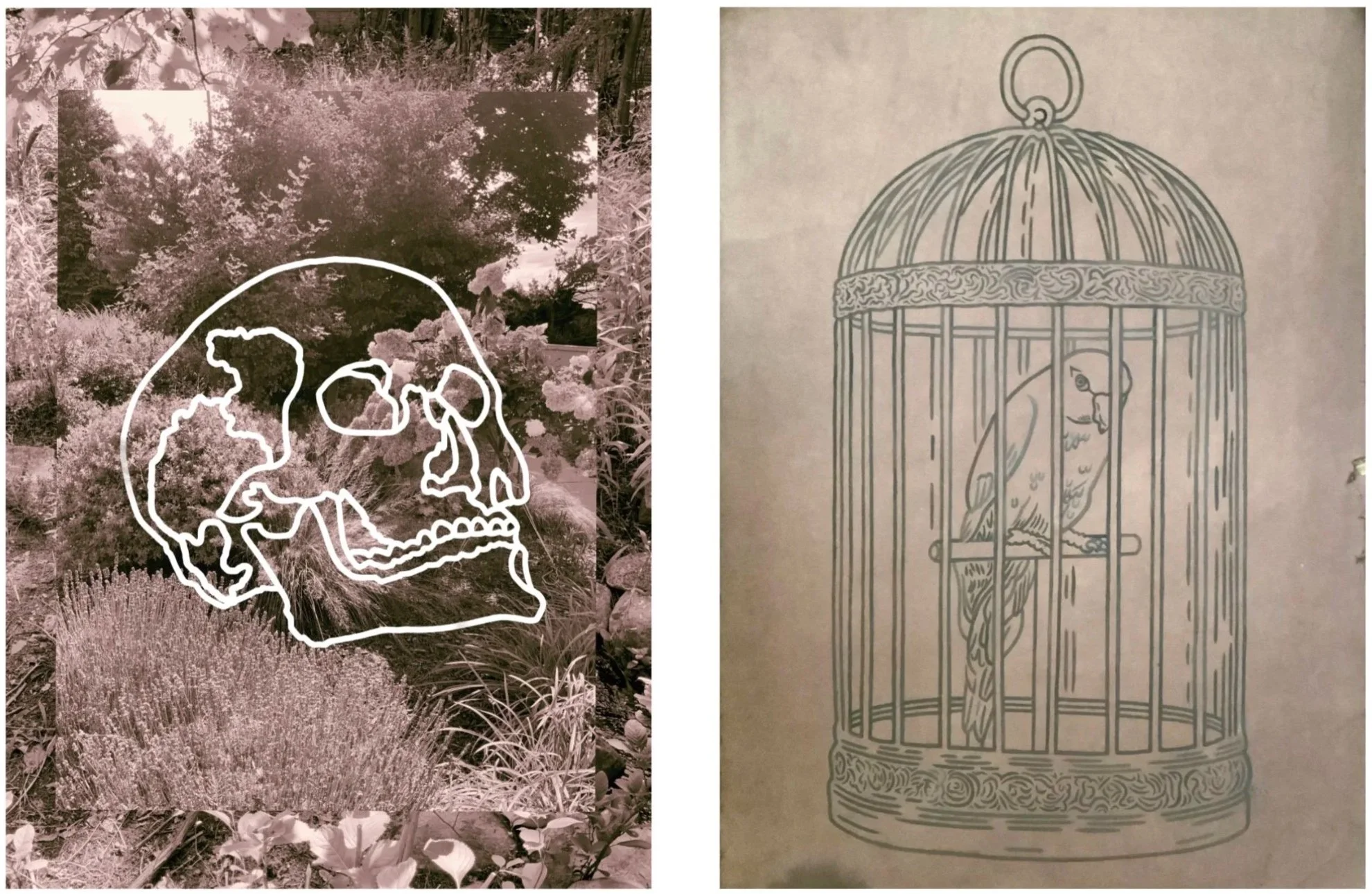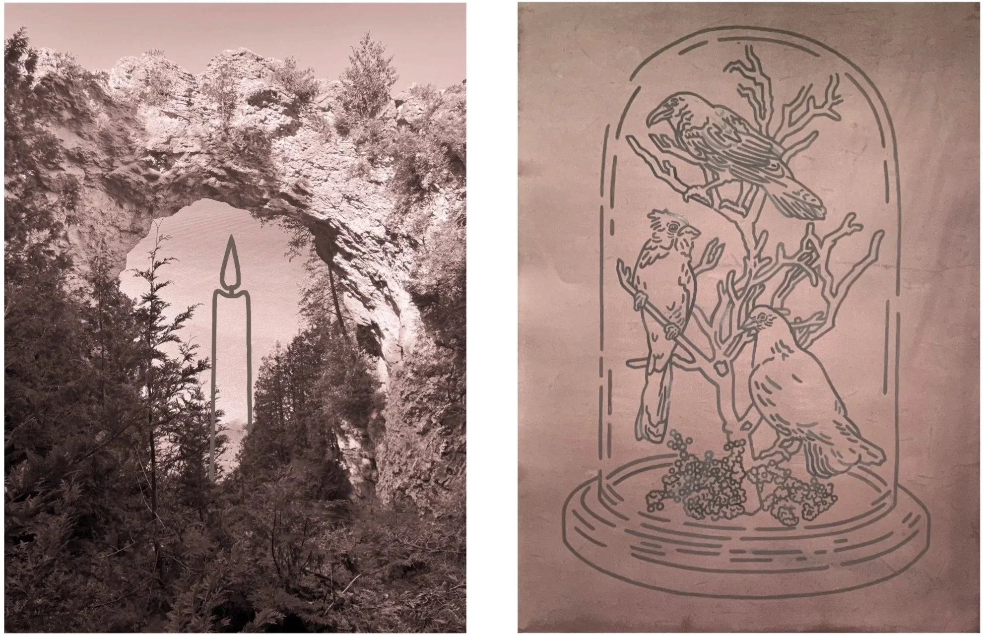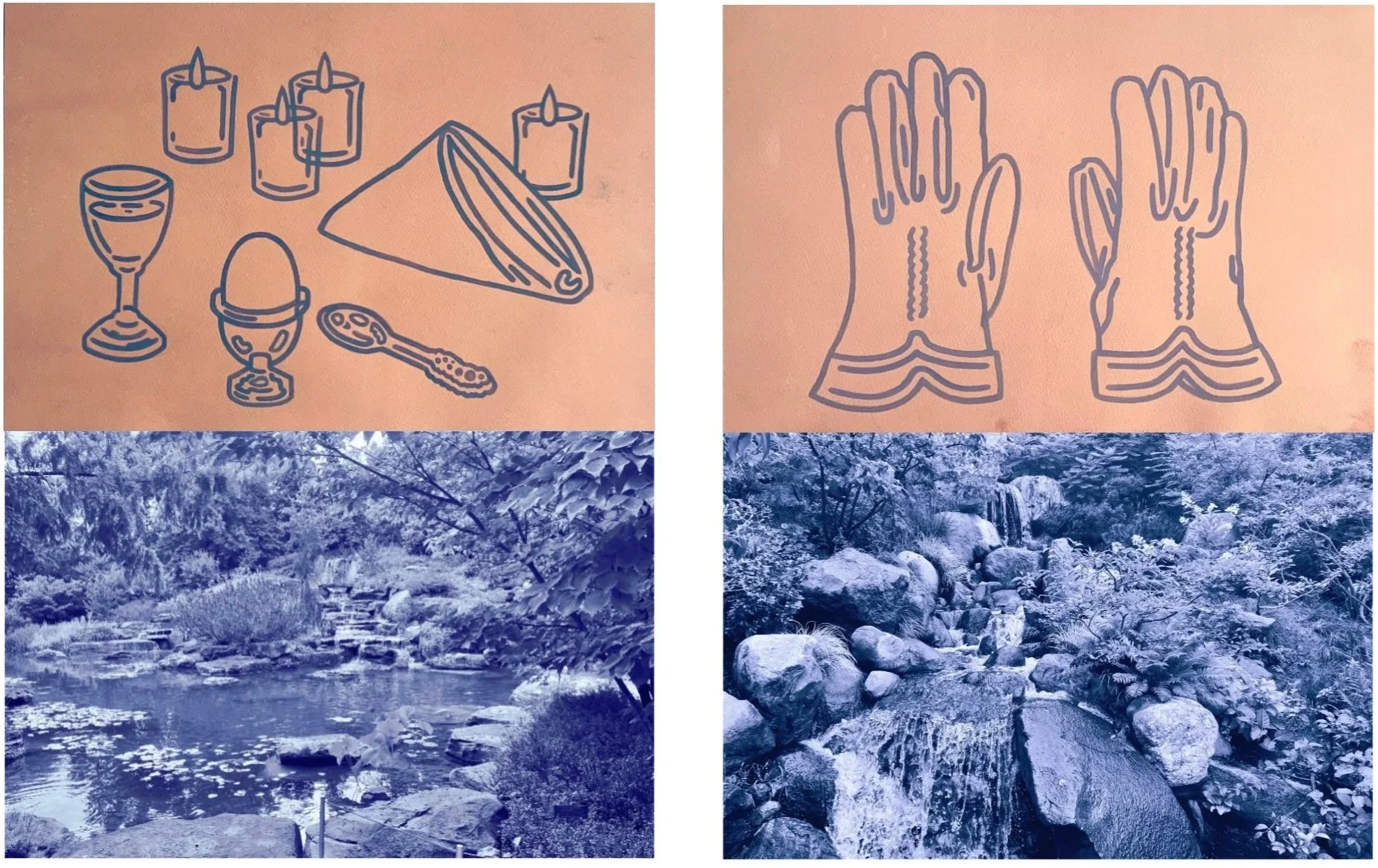 gouache on hand-dyed paper with digital print, 22.5” x 30”